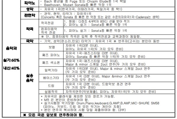 참고로 음악의 경우는 서양음악의 이론 및 실기법을 따르기 때문에 오히려 역사, 언어, 문화 등의 교육은 일반중학교, 고등학교보다 더 높은 수준의 교육을 받을 수 있습니다.