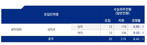 2022학년도 서울대학교 음악대학 정시 접수현황 안내 본문