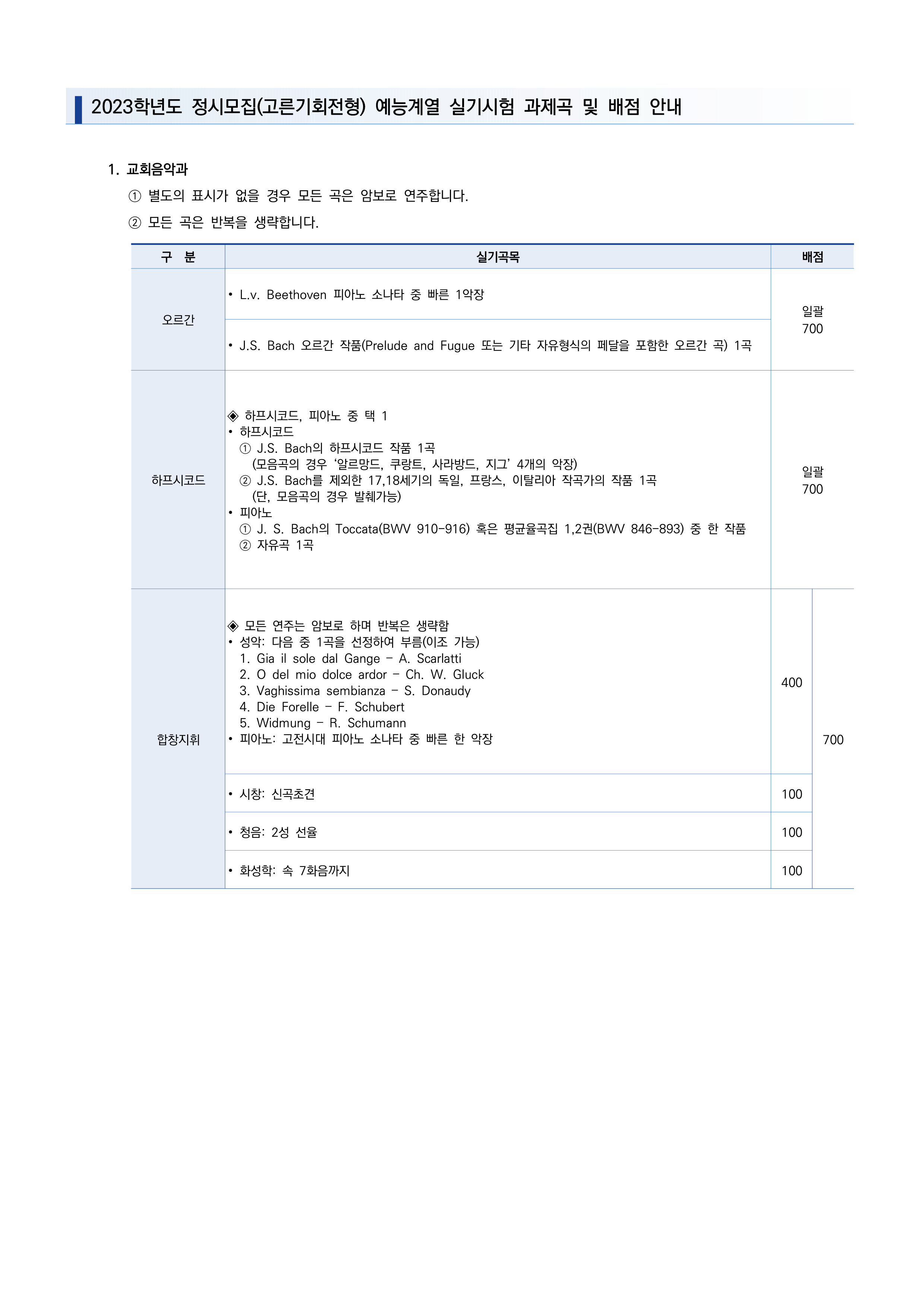 2023학년도 연세대학교 음악대학 정시 (고른기회전형) 실기시험 안내 총정리! 본문