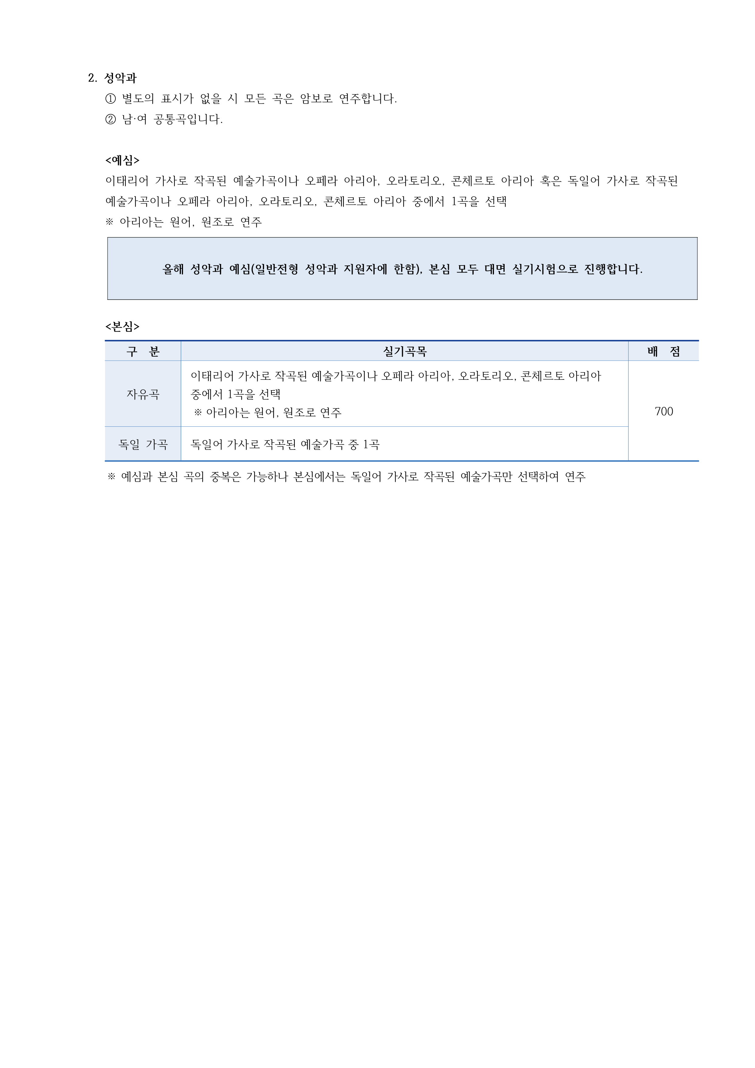 2023학년도 연세대학교 음악대학 정시(일반전형) 실기시험 안내 총정리! 본문