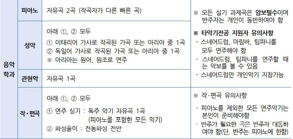 2023학년도 음악대학 수시 모집안내