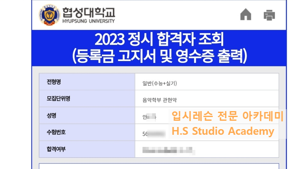 경축! 2023학년도 협성대학교 음악대학(음악학부 관현악) 정시 합격!