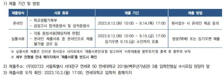 1-3) 제출서류 도착확인 : 2023. 10. 2(월) 17:00