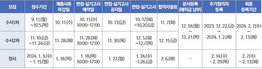 ㄱ) 수시1차 : 2023. 09. 11(월) ~ 2023. 10. 05(목)