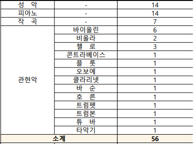 2. 모집인원 : 성악 14명 / 피아노 14명 / 작곡 7명 / 관현악 21명 (아래 이미지 참조)
