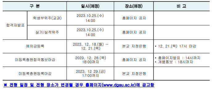 1. 접수일정 : 2023. 09. 11 (월) ~ 2023. 09. 15 (금) 18시까지 (인터넷 접수)
