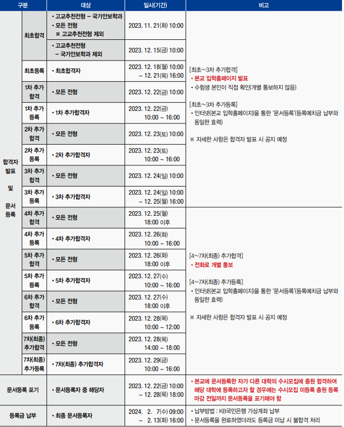 4. 합격자 발표 및 등록안내 (이미지 참조)
