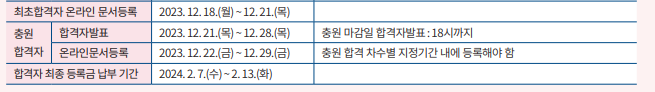 * 그 외에 (충원)합격자 발표 및 등록 안내 사항은 이미지 참조