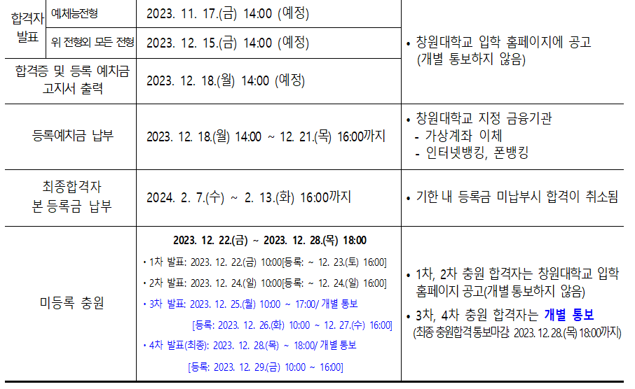 4. 합격자 발표 및 등록안내 (충원합격자 포함)