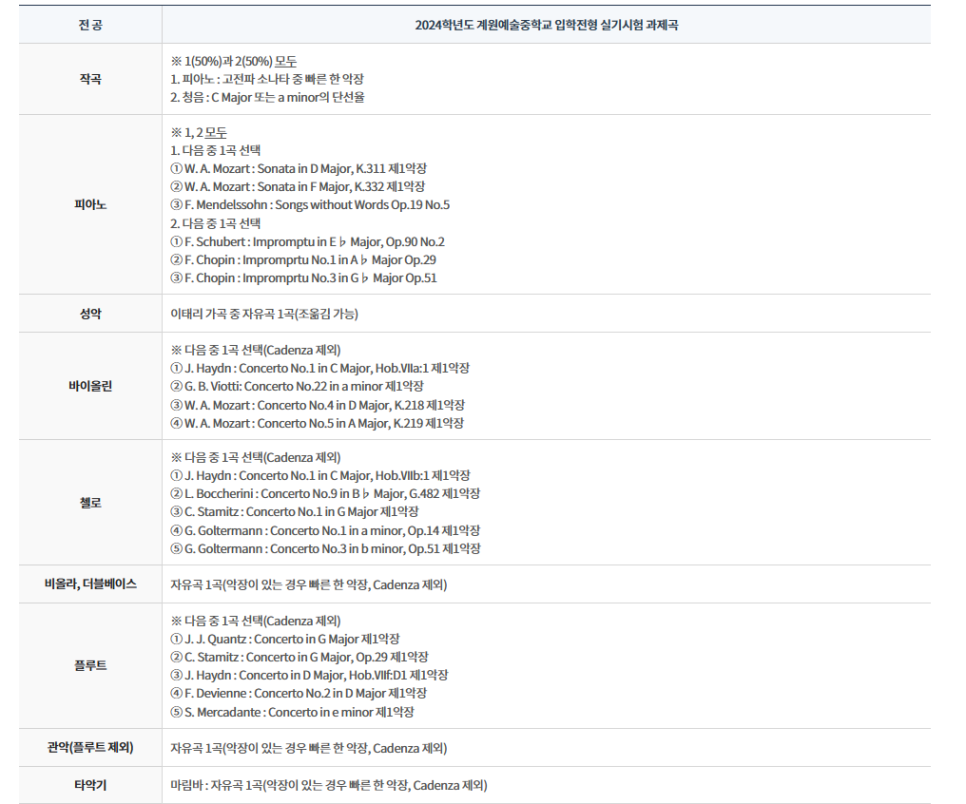 2024 계원예술중학교 음악전공 입학모집안내 (총정리) 본문