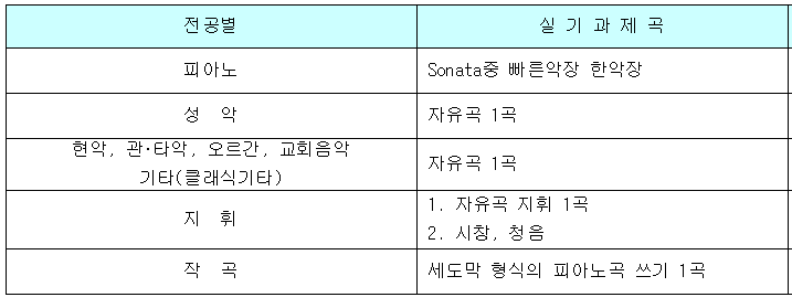 * 실기고사는 예비 소집 및 면접 고사 이후에 실시예정이며 세부 사항은 입학홈페이지 참조